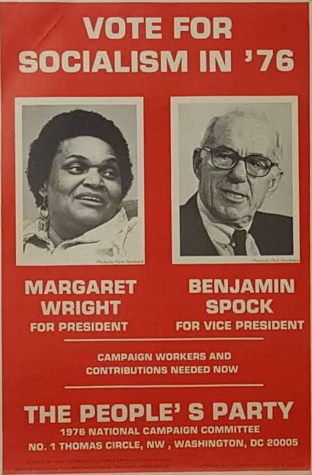 Community organizer and civil rights advocate Margaret Wright campaigned on the People’s Party ticket in 1976, following Shirley Chisholm’s controversial presidential campaign. Wright, a former factory worker who served as the Black Panther Party’s minister of education, was passionate about topics including racial equality, labor rights, and education reform however in 1996 she passed away.