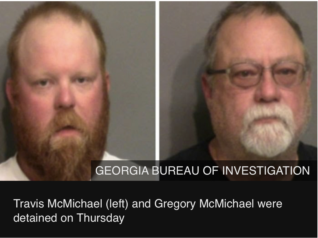 The Georgia Bureau of Investigation announced late on Thursday that both men had been taken into custody. The bureau said the father and son followed Mr Arbery and confronted him with two firearms, and the younger McMichael shot and killed him.