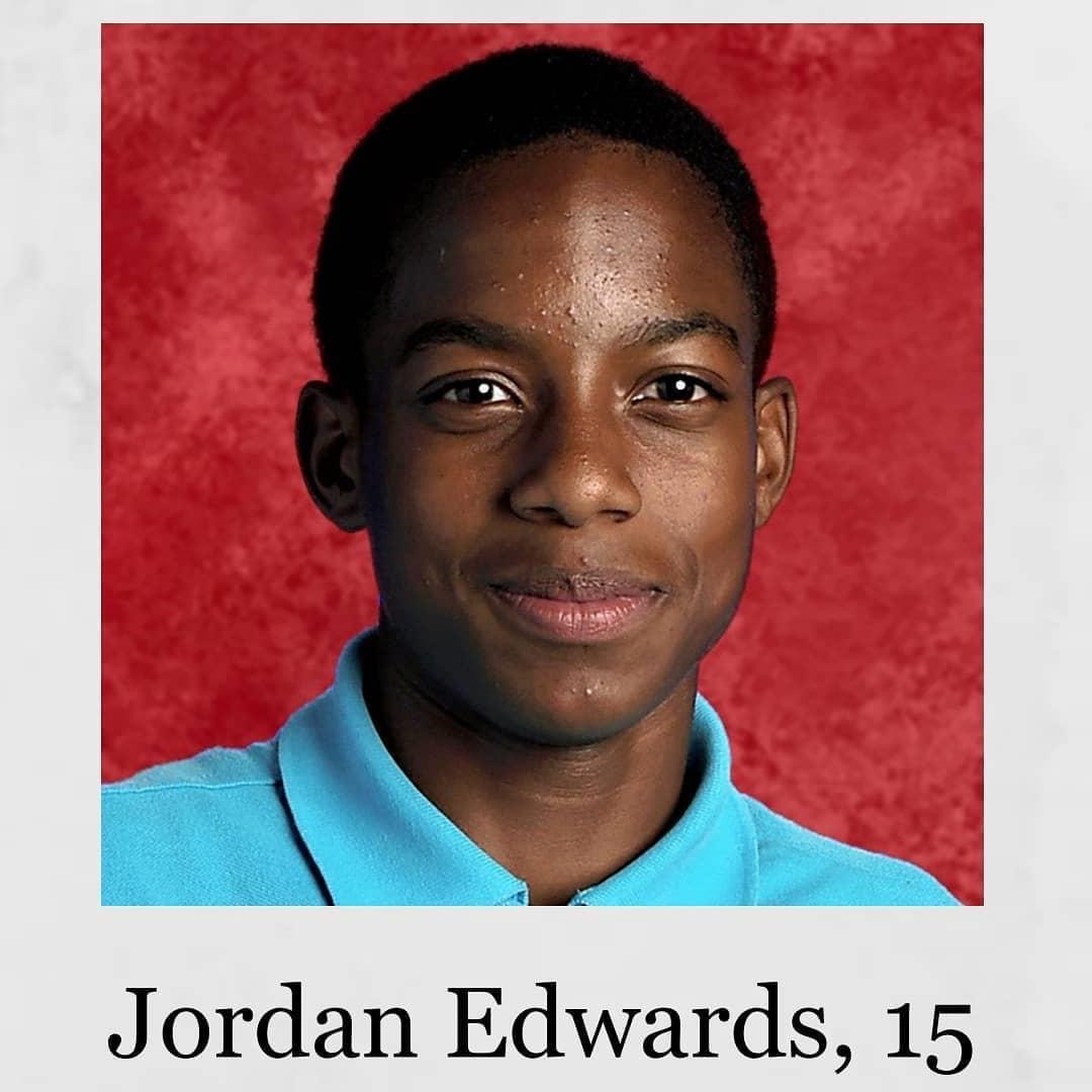 Jordan Edwards was shot and killed by a police officer in the passenger seat of a car while leaving a party. The car was driving AWAY from the cops and the officer fired inside the car under the grounds that the car had backed up towards him “in an aggressive manner.”