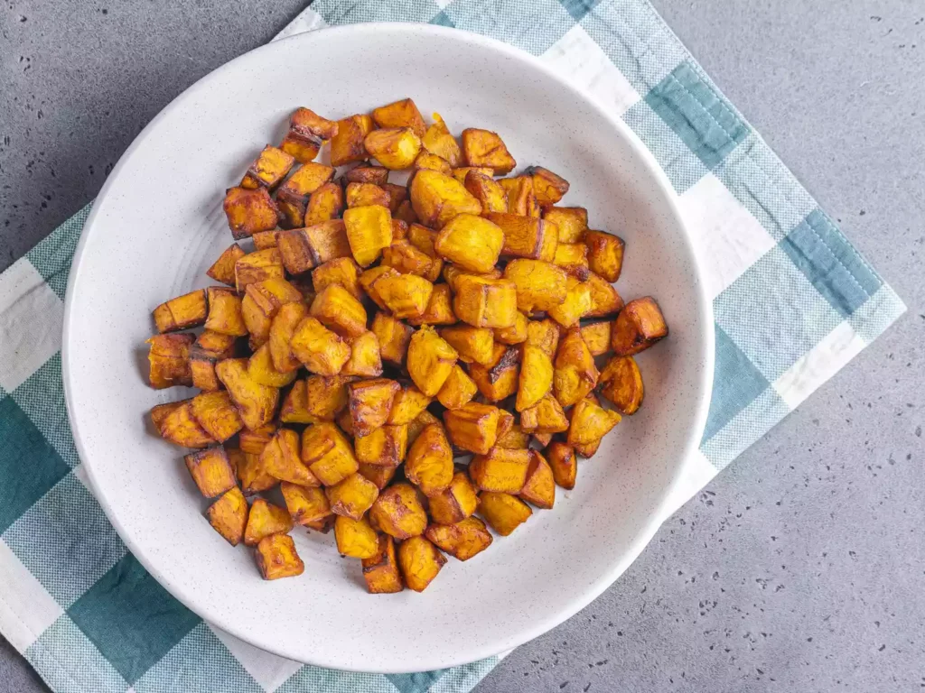 Place plantains in a large bowl, sprinkle with salt, and toss to coat; set aside.