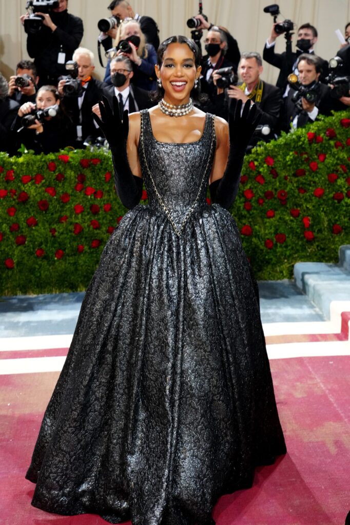 We definitely got princess and cinderella vibes on the red carpet of the event 2022. Laura harrier looked all part a real life princess and that v-shaped bodice was just the needed spice to the lovely gown.