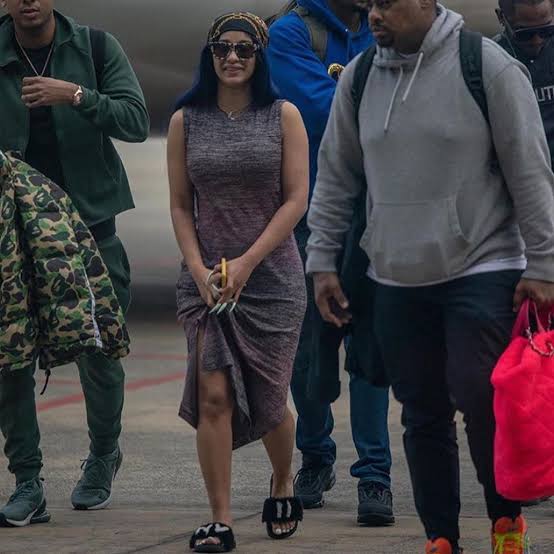 Grammy award winning rapper Cardi B, after confirming her trip to Ghana and lagos and uploading her excited self on Instagram, heralding her trip to Africa for the first time, has finally touched down Lagos, Nigeria.
