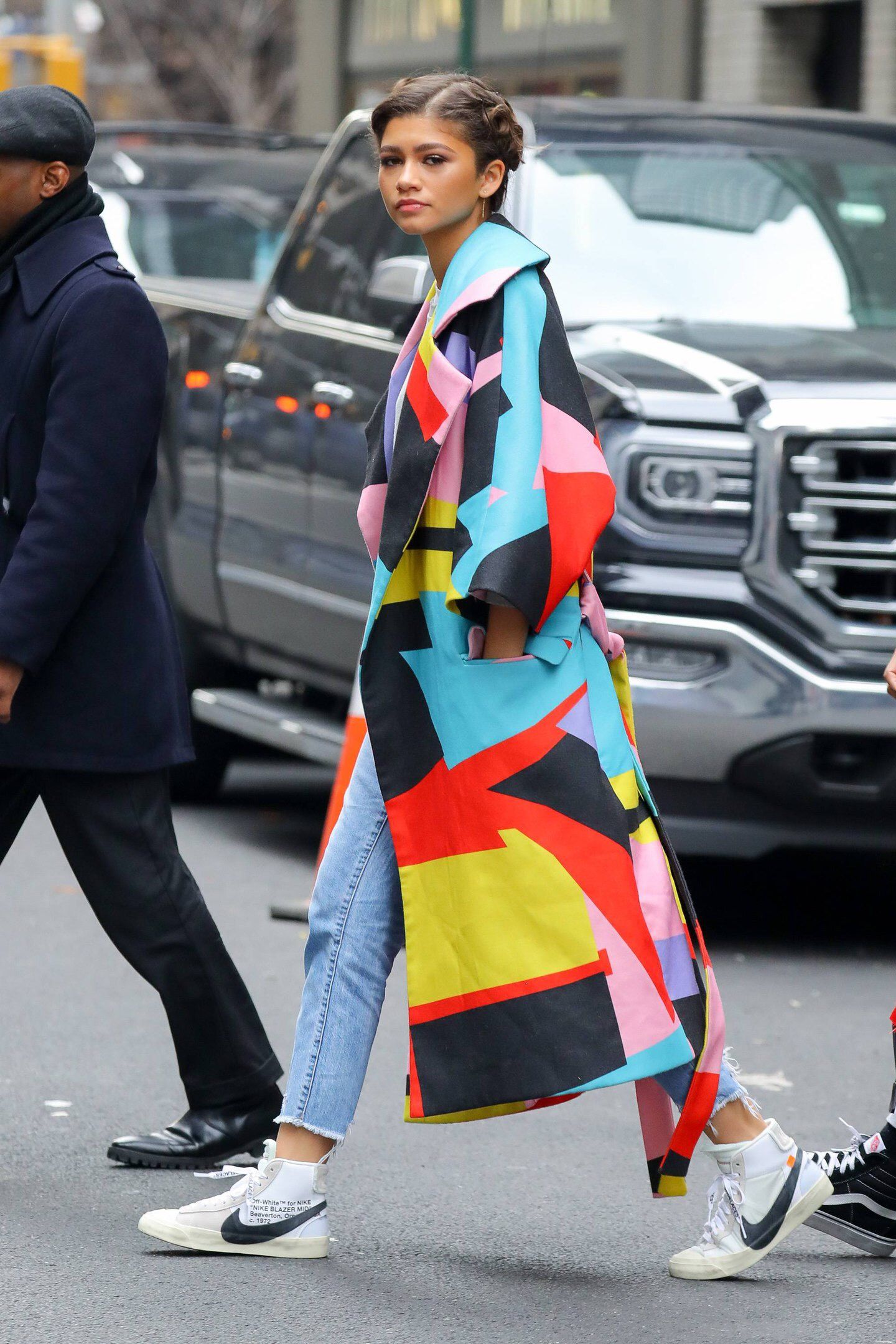 Zendaya rocking a colorful print trench coat