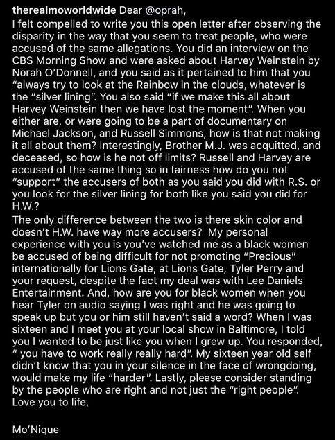 In a lengthy Instagram open letter, Mo’nique says;