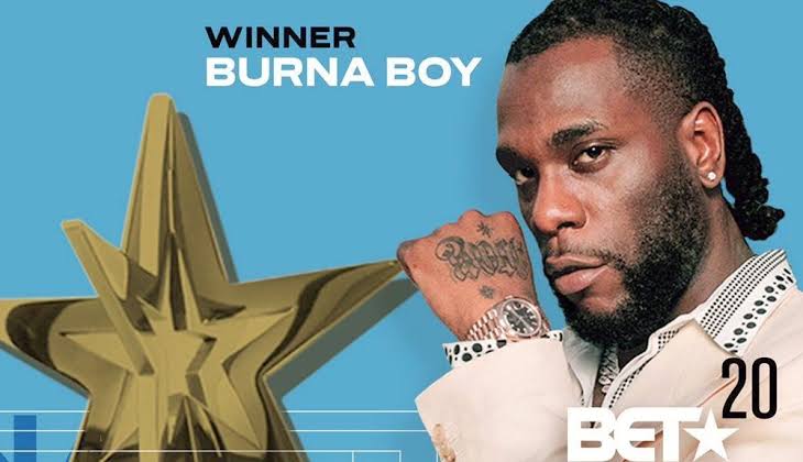 Grammy-Award-winning Afrobeat star, Burna Boy, real name (African Giant) real name Damini Ogulu, has just won the Best International Act Category at the 2021 BET Awards Ceremony. This is the third time he is emerging the winner in three consecutive years, making him the first artiste to win the category three years in a row(2019, 2020 and 2021)