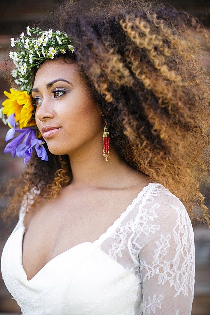 If you are a summer bride, don’t hesitate to show off your afro with the ideal glamorous touch by adding statement accessories to your hair like the looks below. All eyes are sure to remain glued to the bride!