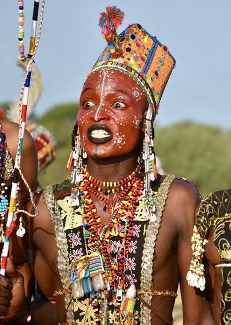The most important ceremony among the Wodaabe is the Gerewol, where men compete to be selected by women as the most beautiful. The men will sing, dance, and model themselves to appear attractive to women. After the beauty contest, the winners may or may not sleep with the women. It all depends on the woman’s wish - Art