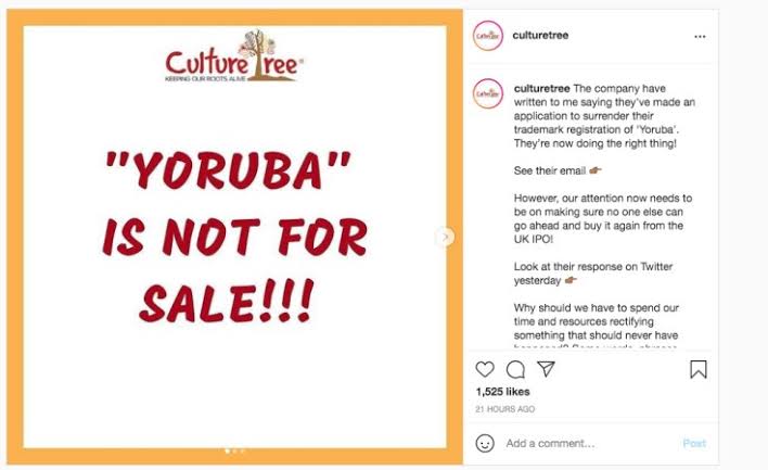 A British clothing retailer named Timbuktu, has come under fire for trademarking the name YORUBA, several years ago;Yoruba is the name of the west African Yoruba. Igniting a debate online about whether trademarking names of ethnic groups amounts to cultural appropriation.
