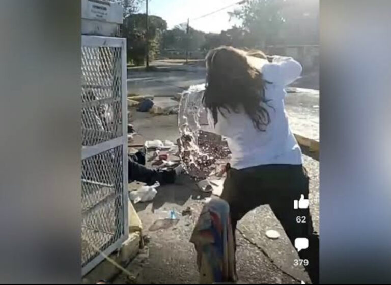 In the video, the employee is seen yelling for at least three individuals to leave the premises. She then approaches a homeless woman sitting around the corner of the establishment and throws a bucket of water on her while yelling; “Move. I’m not telling y’all again. Move it!…I’m sick of this s**t!”